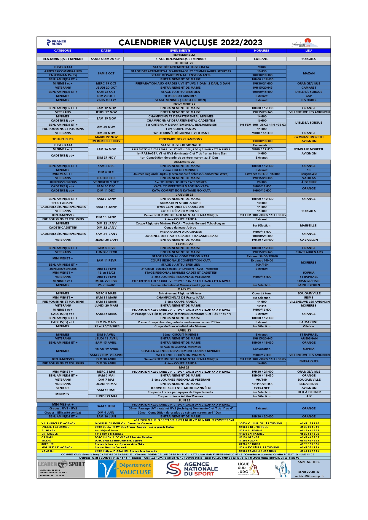Le prochain évènement pour nos judokas est un entrainement de masse (à partir des benjamins) le 08 octobre à Mazan.