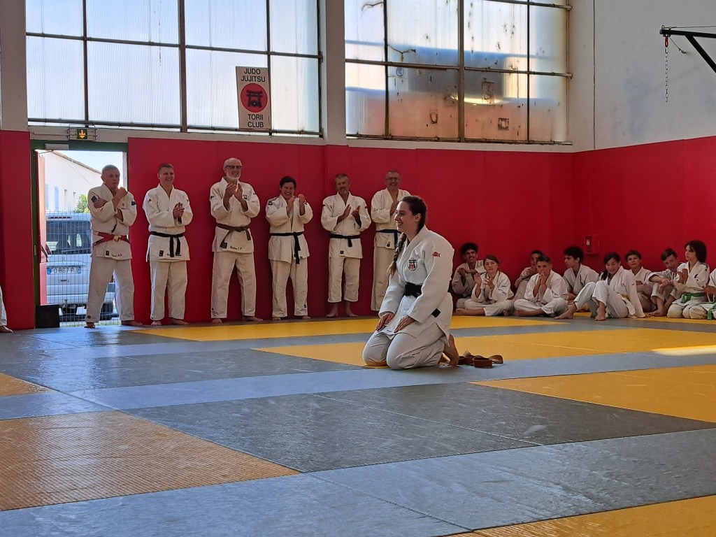 Nous avons même eu la chance de pouvoir remettre la ceinture noire à Amandine qu’elle a gagné lors de sa dernière compétition.![]()